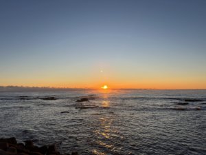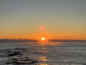 朝早く起きて日の出を見ました!
