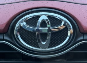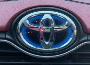 上にハイブリッドはTOYOTAのマークを青色で縁取っています。